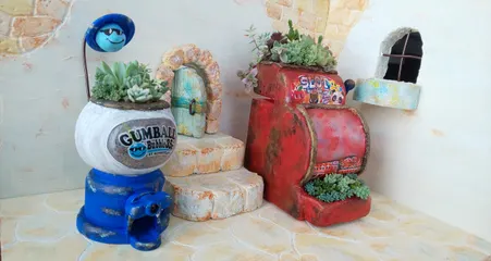 アレンジアワード2023【多肉寄せ植え・動物キャンプ⛺】 🐼「おーい!みんなそろそろカレーが出来るよ🍛」🐊「とったぞ~👍️今日も大漁だ❗やっぱり俺様は釣り名人⤴️バンバン釣ってみんなに振る舞うから待ってな❗」🐊「それにしても今日も暑くて水辺が眩しいぜ🕶️✨」🐼「ねえ、ライオンじいさん。本ばかり読んでいないでちょっと手伝ってよ」🦁「いや~悪いね🙏パンダくんは