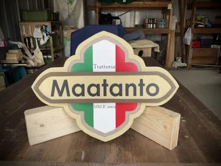 この数日間、京都の友人へのプレゼント🎁のショップボード🪧を作ってましたが完成しましたよぉ〰️✨🙌✨ イタリアンのお店で20周年の記念にと✨🌈✨✨ デザインも拘りましたが・・・ やっぱり💨 この3段重ねとトリマーでの溝を使った立体感がポイントでしょうか✨☝️ &