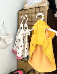 ペットウェアラック ※ 投稿時、ここにコメントを記載してくださいペットウェアラックが本棚に取り付け出来た。 作ったよ■記念に画像をアップしよう ■カテゴリを選ぼう! ■材料をメモしよう(任意)格子アミ、スチール掛けラック ■工程をメモしよう(任意)本棚にアミを木ネジで固定してスチ