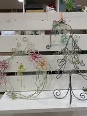 ワイヤークラフト 昨日は朝から夕方までワイヤークラフトのWSでカインズさんにいました!! ご一緒した方とワイヤーの交換したりして最後のリースはカラフルな作品になりました❤️ 作りたい色のワイヤーが売り切れてたりだけが少し残念でしたが、とても楽しいWSでした❤️