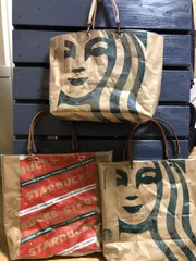 スタバさんのショッパー。気がつくと沢山溜まっていて。勿論、そのままでも再利用できますが、カインズさんでテーブルクロスの透明を購入し、ミシンをカタカタ。手さげ部分は、100均で。バッグに入りきらない、ちょっとした物を持ち歩くのにお洒落です。奥の方へしまいこんでなかなか表に出す機会のなかったミシンを久し
