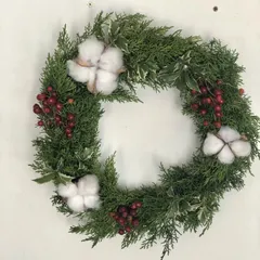生で作るリースいいですね😍❤️ ローズヒップとコットンがアクセントになって、とっても素敵なリースに大変身ですね🤗🎶