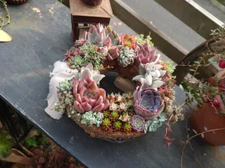 ステキなリースの寄植え♥ずーっとうっとり眺めていられますね😍😍😍