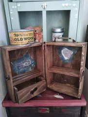 アウトドア用品を収納したくて作りました☺カインズの展示してあったクミモクを使った収納箱をヒントにアレンジしました✨ハートの引き出し本体は先日作って切って残ったクミモクの箱を再利用色はチューダーオークです✨自分はこの色がしっくりしました✨