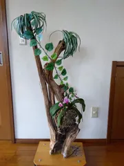 立派な流木😳 植物が見事に着生しているので見応えのあるオブジェになってますね🎶 ペットボトルを使った水やり治具、手間いらずでナイスアイデアです😁