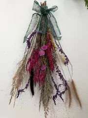 たくさんのグラスを集めてリースにしてみました。今年はグラスに魅せられ、たくさんの種類を育てました。