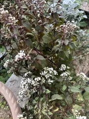 ユーパトリウム チョコレートと名前がついているので茎が濃い茶系です。地植えにして秋に白い小さな花がたくさん咲きます😊大分伸びて倒れてたので✂️ドライにして何かできたら🤔