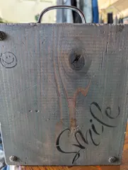 CAINZの廃材コーナーで大きさも厚みも👍2枚購入 袋に2枚しか入らなかったんだけどもっと買えば良かった〜 裏表塗装とステンシル、太鼓ビス??だっけなぁ〜 それ付けてセリアで買った取っ手をつけて鍋敷き完成一個はお友達にあげた