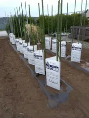 今年も夏野菜を植付けました。🤗🤗🤗風除けの中で🍅🍆🫑🥒の苗を着生するまで育てます。 風除けの中のトマト🍅の苗これはナス🍆の苗これはピーマン🫑の苗です。最後は胡瓜🥒の苗になります。