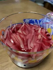 紅しょうが 新生姜が手に入ったので去年の梅酢で紅生姜作ってみました。一晩おくとのことで明日が楽しみです。🤗カインズスクエアで紅しょうがは梅酢に漬けるって初めて知ったの❣️