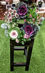 チェア型ミディアムガーデンスタンド、葉牡丹のリース共に素敵です🥰 これから、クリスマス🎄お正月🎍と活躍してくれそうですね💓