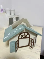 おうち型ティッシュケース カインズ到着までの道のり、色んなおうちを見て外壁と屋根を見ててシルバニアの様なおうちにしたいと思い、サンドグリーン&バニラにしました🐰窓枠はセリア100円をボンドで貼りタイルシールで飾りました。窓の開閉も自在🪟 とっても楽しく皆さんと作る事が出来ました。2個も3個も欲しくなっちゃいました🏠