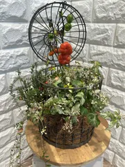 可愛い鳥かごの寄せ植え ご一緒した皆さんの投稿が早くて出遅れました💦💦💦💦💦げんままさんの説明が素敵で💕🎶 同じものを作ったのに別物の感じがする ハロウィン🎃でソラナムパンプキン ナス科だそうです🍆 お花の数が増えてきているから寄せ植えする機会が多くなると思いますが 投稿できるように