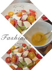 🍋酵素ドリンク3、🍋塩麹1、白ワイン2、市販レモンドレッシング2、オリーブオイル3、コショウでドレッシングを作りました😊塩味強めな生ハムだったのと、モッツァレラチーズの優しい甘味を味わいたいなーって思いの分量です😋いつものサラダには、酸っぱい系のレモンを絞って加えてドレッシングにもう少しパンチ感を出