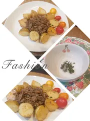 ハーブ(タイムを使って♪牛肉とジャガイモ) ベランダで育てているタイムを使って晩ごはんのおかずを作りました😊牛肉に酒、みりんを回しかけてフライパンで炒めたら、一旦、お皿に。そのフライパンに電子レンジにかけて柔らかめになったジャガイモを入れ、オリーブオイルを回しかけて焼き色がつくまで炒めます。そこにお皿の牛肉を加えて白ワイン、醤油を入れ炒めます
