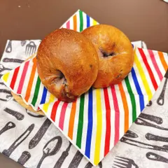 ミックスベリーベーグル 先日、久しぶりにcooking funに参加しました!前から作りたかったベーグル🥯もっちり美味しかったです💕 お持ち帰り生地もバッチリ👌焼けました♡