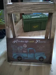 看板つき鉢置きスタンド リメイク③最終回 いよいよラスト…看板リメイクです。と言っても😅ベニヤって裏の顔と表の顔がありますね。私が塗ったのはブラック系なのですがベニヤの裏側は茶色に色がなりました。そこで裏を使って両面看板にしました。気分で表を変えられます。うちにあるステンシルシールを使って見ましたが買ってきた塗料がシャバシャバで色が出なかっ
