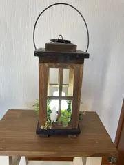 ありがとうキャンペーン アンティーク調に仕上げるランタン風木製ケース 一年以上前に作ったものですが、お気に入りのひとつです✨ ミニランタンと100均のグリーン、ムーミンを飾ってみました😊