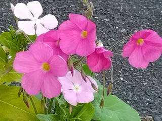 綺麗なピンク色のオキザリスが咲きました😊🎶こぼれ種の薄ピンクの日々草と一緒の鉢です😅