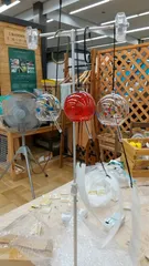 孫娘と風鈴🎐を作りました❗️ 久しぶりにWSに参加しました❗️キッズでしたが、ばあばも一緒に参加させてもらいました😊見本の花火や金魚に挑戦しましたが、難しくて断念😅私はトマト🍅孫娘はドットで作りました❗️楽しかったです😊
