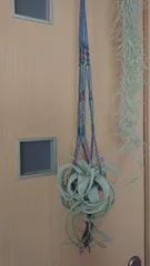 プラントハンガー100均の麻糸で作りましたキセロを入れてこのまま霧吹きしてます思ったより簡単に出来たので今度は間にビーズでも入れてまた作りたい‼️