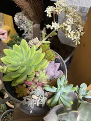 太田の帰りに寄ってみたら💚 かわいい😍 午後のワークショップ中も一緒に店内に💚午前のワークショップ帰りに時間があったので寄ってみたら✨ まだあるじゃない🥰多肉寄植え鉢が❤️ 花が咲いてない方がいいのかもしれないけどこんなにたくさんモリモリ入ってる🥰ということで即購入💚 購入後