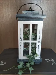 ランタン風木製ケース 最近ホワイトが好きで、どうしてもこの色で作りたかったので予約枠のあるカインズさんを探して作ってきました。今朝早くにステンシルしてさっそくパチリッ・今日は妹が来るので見えるところに設置、WSの自慢話をしちゃおうっと目論んでいます😁✨✨✨❢