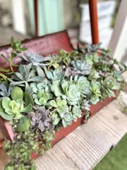 工具箱🧰寄せの仕立て直し 寄せ直し前の焼け野原状態夏に焼け野原になってしまった工具箱🧰寄せを手直し。焼き肉になってしまった多肉を引っこ抜いて、鉢の整理も兼ねてスキマを埋めていきます。ホントは全部引っこ抜いて一からやり直したら良いんだけどね💦とりあえず、植えてあとは多肉ちゃん達のこれからの頑張りに期待しとこ♡
