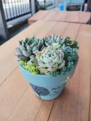 多肉寄せ植え 寄せ植えちょっと崩れてしまったので😅💦植え直しました😊🎶✌️鉢の色に合わせて多肉選び😁🍀まあまあかな🤔