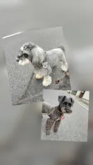 リフレクターを着けて🐺🐺お散歩姪っ子🩷 ■作品内容わんわん祭り2025のリフレクター🐺■作品のこだわりポイント シュナウザーのは、姉作で色合いを似た感じにしたようです🤍🩶💕 (ミニチュアダックスフンドのは今はお空にいる姪っ子で、少し前に作りました私作です🩷) 今朝のお散歩の様子です。(曇り空なのでみんなグレー色🤭)姉から届き