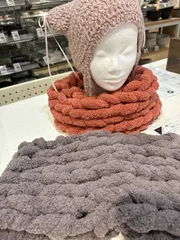 手編みネックウォーマー 幕張イオンで手編みネックウォーマーのwsやってきたよーん。毛糸の代金だけで丁寧に教えてもらえました〜明日迄やっているよ🤗薄着で行ったので帰りに首に巻いて丁度よかったです🚲