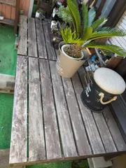 ウッドデッキの塗装 剥げハゲでやばかったので、塗装し直しました😊 39セールで昔安く手に入れたので、いつまでもつのか🤔💭笑塗り直すのが大変なので、次はアルミのデッキに変えたい🤣