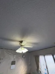 目が痛い、、天井塗装 ずっとやる事リストに残っていた天井塗装、やっとやりました👍目が痛い、、眩しくて😆達成感ある一日となりました😊養生が大変なんですよ養生さえ終わればコロコロで楽勝です🙌家具の移動を最小限にする為に半分ずつ