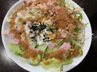 今日のランチ!サラダとろろうどんのゴマだれ✌️