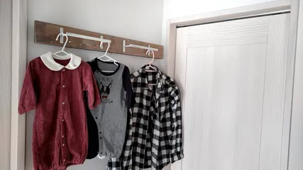 カインズさんのどこでも下地を使って長押を作りました。 ランドリールームの横に設置しました。乾いた洗濯物を一旦掛けておく場所が欲しかったのでとても重宝してます。作業時間も全部で1時間くらいで手軽にできました。
