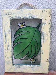 スタンプー ダイソーのフォトスタンドの額部分を塗りガラスに絵を描きました5年くらい前100均の額縁でステンドグラス風の物を作ってみました