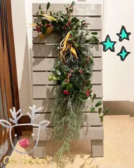 先日デカイサインボードを作りました。そこに、デカいクリスマス&お正月リースを作ってみました〜〜もう少し飾り付けします。
