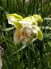 八重咲き水仙 1週間たっても開かなくて、もう写真に撮って投稿します! お引っ越しされる方のお庭からいただいたたくさんの水仙の球根、夏過ぎで掘り起こしたものをもらい、何色が咲くか楽しみでしたが、八重咲きがあるなんて😍😍