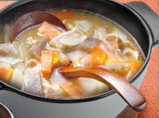 【レンジで楽チン カレーポット活用レシピ】豚汁 今回は「レンジで楽チン カレーポット」を使った、豚汁の料理レシピをご紹介します!豚汁 材料 豚バラ肉50g里芋60g大根50g人参30gこんにゃく40g和風だし240㎖味噌大さじ1青ねぎ適量七味唐辛子適量作り方①豚バラ肉は一口大に切ります。里芋は皮をむいて洗い、4等分して調理寸前まで水につ