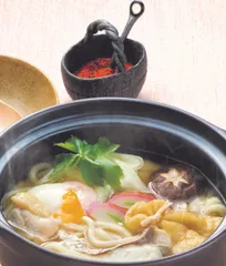 今回は「レンジで楽チン カレーポット」を使った、鍋焼きうどんの料理レシピをご紹介します!鍋焼きうどん材料ゆでうどん1玉(200g)鶏モモ肉30gもち巾着(市販品)1個しいたけ1枚白ねぎ15g白身魚の切り身(薄切り)2切れ(40g)かまぼこの薄切り2枚うどんつゆ250㎖温泉たまご1個三つ葉適量七味唐辛