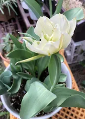 咲きました🌷 気付いたら咲いていたのでどんな感じで開いていったのかわからない😅 八重のチューリップでした