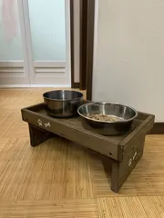 アレンジアワード2022 「端材でディナーテーブル」 ははるかのんです。 友人宅の ワンちゃんにプレゼントするお食事用テーブルです工房をお借りして進藤さんのアドバイスを受けながら端材で作りました御世話になりありがとうございました🙇♀️ 彼は、後期高齢犬🐕なので....友人の希望で その後、フラワースタンドとかにアレンジしたいらしい