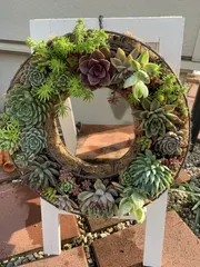 とても豪華な多肉ちゃんのリースですね😊 白いフラワースタンドに合いますね✨