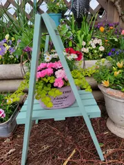 フラワースタンドも2個作ったのね😄スタンドの上の寄植えも綺麗だね😄 下のあじさい、本当に桜🌸みたいだね😄でも、私はあじさいの隣のりんご🍎が気になる😁かわいい〜私も欲しい😁椅子もかわいいね🤩