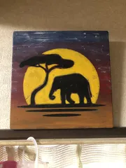 ミニサインボード 今日の午前中はWSに参加してきました。初めてのミニサインボード😃サファリを選択。思ったより色選びが大変。ちょっと暗めな仕上がりになってしまいました。同じデザインでも色選びでイメージがこんなに変わってしまうなんて。センスが大事な作品だと改めて感じました❗️