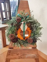 ■作品内容先日投稿した剪定枝リースにミカンの皮を使ったミニリースを追加しました😆少し豪華✨✨になりました🤭