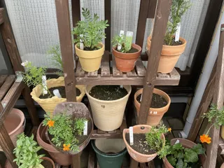 マリーゴールド、4号素焼き鉢で開花してからの移植
