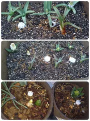 昨日は1日中雨でした🌧️雨上がりの朝、ようやく庭に出ました。1月に植え込んだムスカリ等が顔だしてました😊留守中にもっと成長してるかなって思ってましたが、寒いせいかまだ小さい🌿