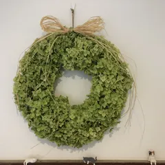 アナベルのリース♪ アナベルが強い日差しで茶色になりながらも緑色になってきました。 ドライフラワーやリースにするには白い花が緑になったら収穫します。道草、いや庭草を食べる猫。 アナベルよりもエノコログサの方が美味しいにゃ〜♪ 1年間、壁に吊しっぱなしのアナベルのリー