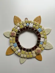 タイルを使ったリース 以前、作ったタイルのリースを今度は夏バージョンを作って来ました💓 夏と言えばひまわり🌻のイメージだったので葉っぱを上手く利用して花びらに✨ 全体的に淡い色になってしまって少し濃い色を使っても良かったかなと思いましたが、これはこれで可愛く出来たかなって思っています💕 次は